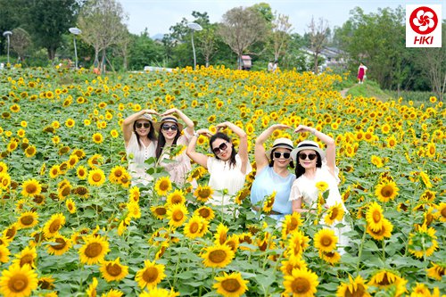 连片的向日葵花田也是一道靓丽的风景线。金黄花盘向阳舒展,花茎挺拔如列阵,微风拂过,整片花田掀起金色浪涛,成为摄影爱好者追逐的“宝藏地”。“往年来看荷花,今年多了这片向日葵,景色更丰富了!”来自旌阳区的游客黄世华带着家人在花田合影,镜头里定格下人与自然的和谐画面。